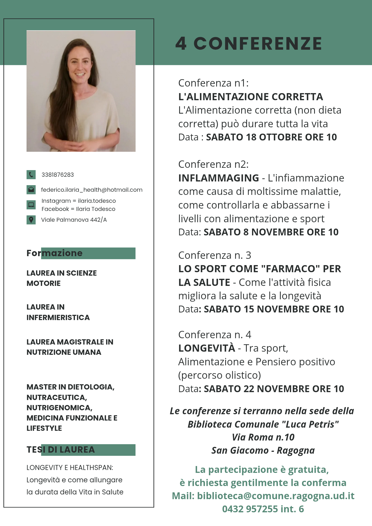 Conferenze sull'alimentazione e salute tenute dalla Dott.ssa Ilaria Todesco